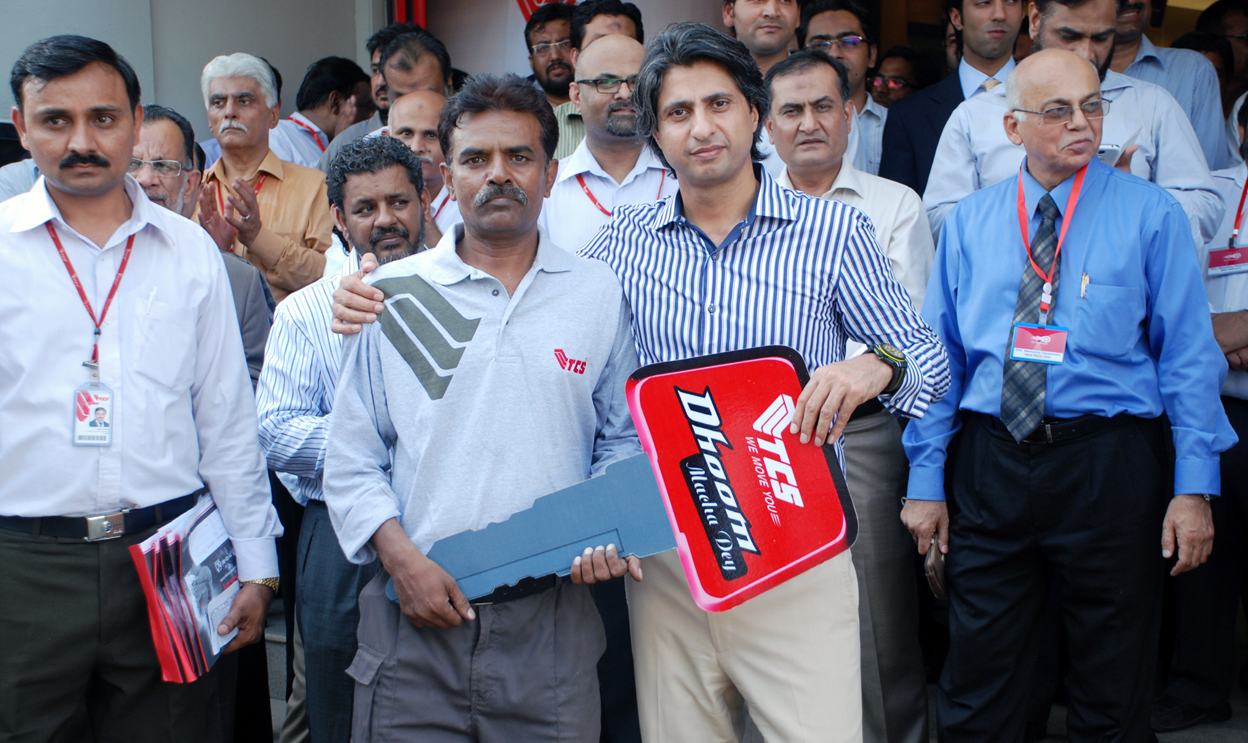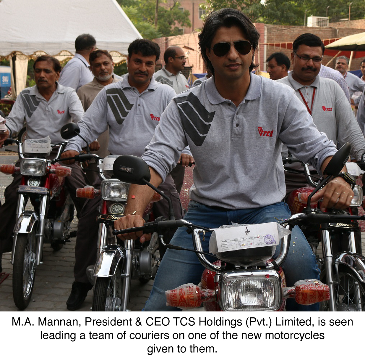 Mr. Khalid Awan, Chairman, and Mr. M. A. Mannan, President & CEO – TCS Holdings (Pvt.) Limited personally handed over the motorbikes to couriers who have served TCS for more than 1 year.