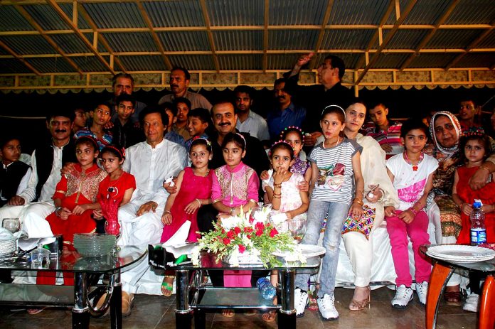 ISLAMABAD: Jun30 - Chairman Pakistan Tehreek-e-Insaf Imran Khan, Patron in-chief PSH Zammurad Khan and Additional Secretary Information PTI Dr Shahzad Waseem in a group photo with the orphans of Pakistan Sweet Home on the occasion of Iftar Dinner hosted by the secretary.