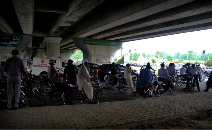 Islamabad Motorcyclists Shelter Themselves Under A Bridge During Rain