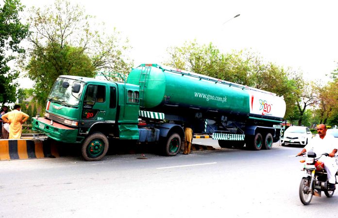 Faislabad:Motorists Passing By A Tanker Which Collided With Road DividerBy Ali Hassan - August 2, 20160631ShareFacebookTwitterPinterestWhatsApp Faislabad:Motorists Passing By A Tanker Which Collided With Road Divider