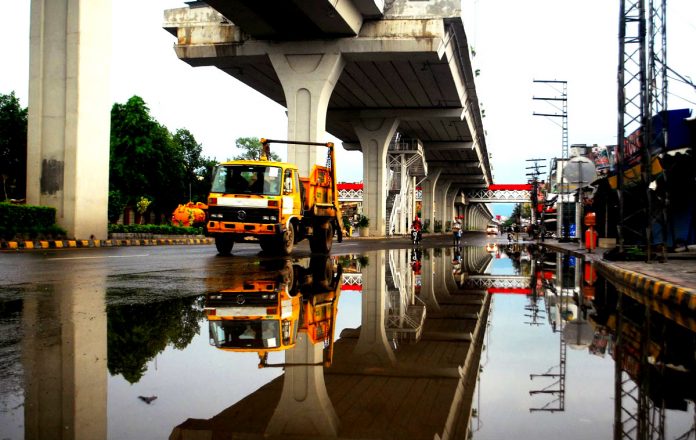 Rainwater Seen Accumulated On Murree Road Beneath The Tracks Of Metro Bus