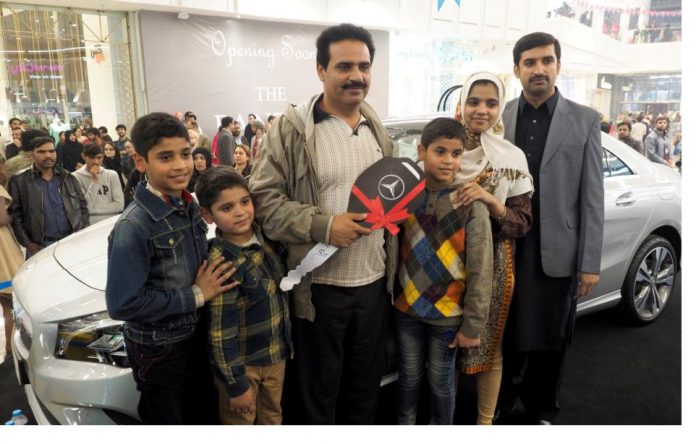 [Lahore: 15th December 2016]:The Emporium Mall by Nishat Group hosted the Grand Finale of the Lahore Shopping Festival on Wednesday, 14th of December 2016. After a month of festivities comprising of spectacular discounts, fun activities and daily prize distributions,The Grand Draw finally happened and the last night of the festival gave out a Bumper Prize comprising of a Mercedes Benz CLA along with other exciting prizes like a Suzuki Heavy Bike, multiple air tickets to UAE sponsored by Emirates and Etihad Airlines, iPhone 7, Macbook and a cash prize of PKR10,000 amongst others. The ceremony took place on the ground floor of the Emporium Mall and commenced at 8:00 pm on Wednesday.