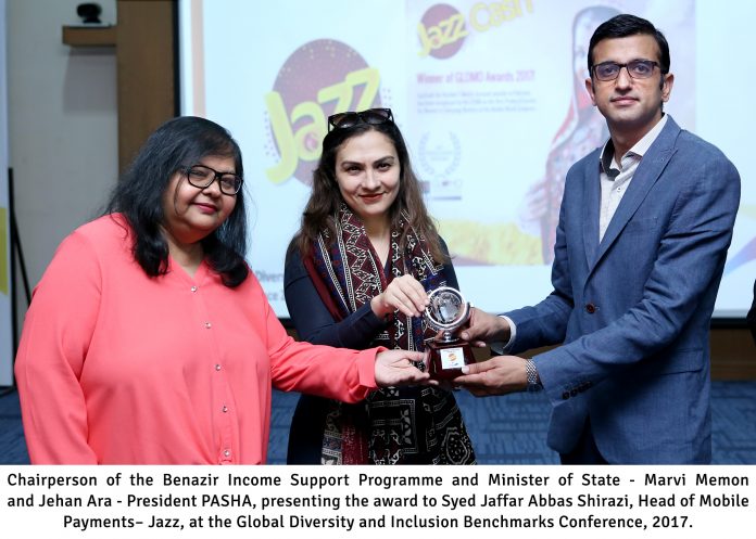 The award was presented to Syed Jaffar Abbas Shirazi, Head of Mobile Payments– Jazz by the Chairperson of the Benazir Income Support Programme and Minister of State Marvi Memon and Jehan Ara, President PASHA.
