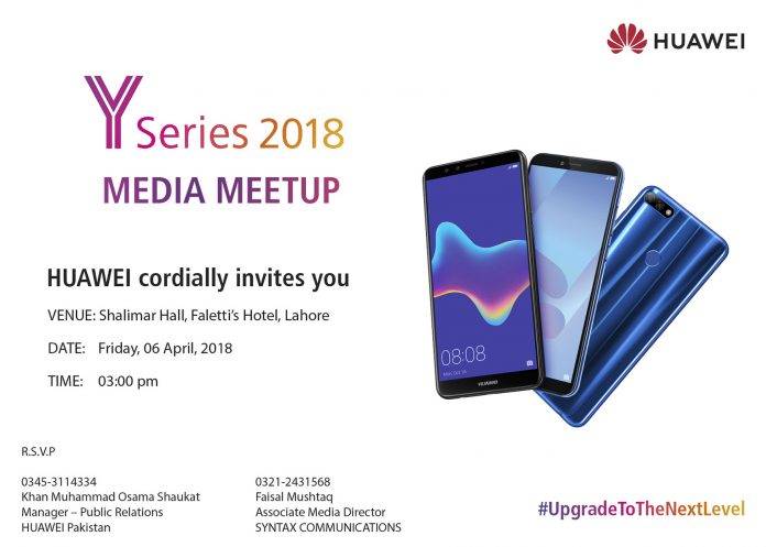 Huawei Cordially invites you at Y series 2018 Media Meet up