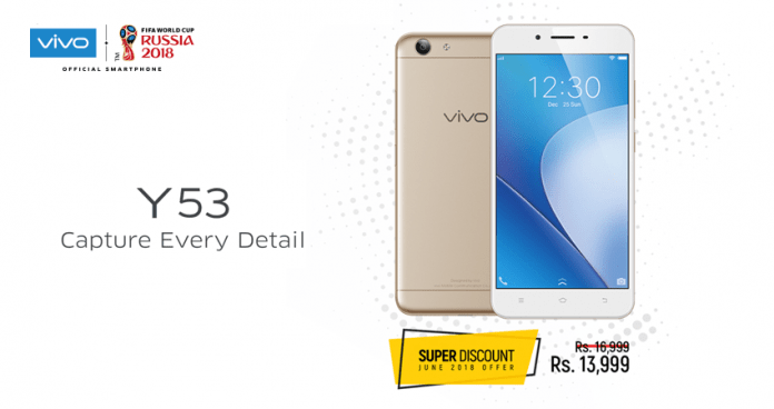 Vivo Pakistan is now offering a special discounted price for its most affordable smartphone Y53 during the month of June. Customers across Pakistan can now get the Vivo Y53 for Rs. 13,999 from June 1st to June 30th.