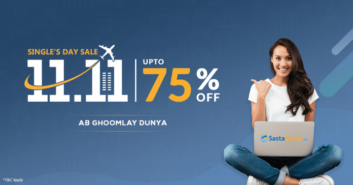 Mark your calendars as this 11.11, Singles Day will set a new precedent for all travel deals to come. Sastaticket.pk offers massive travel discounts on all domestic and international flights and hotels. Book hotel and ticket to your dream destination at Sastaticket.pk with up to75% off. The biggest travel deal of the year 2018 will be a 24 hour event that will start making its mark from 12:00 AM,11th November till 11:59 PM.