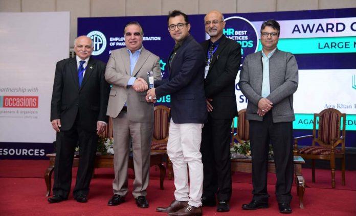 The Employers Federation of Pakistan (EFP) has awarded Engro Polymer with Best HR Practices 2018 in Large National Companies category. The photograph shows Mr. Imran Ismail, Governor Sindh presenting the award to Mr. Salman Hafeez, HR Manager, Engro Polymer.