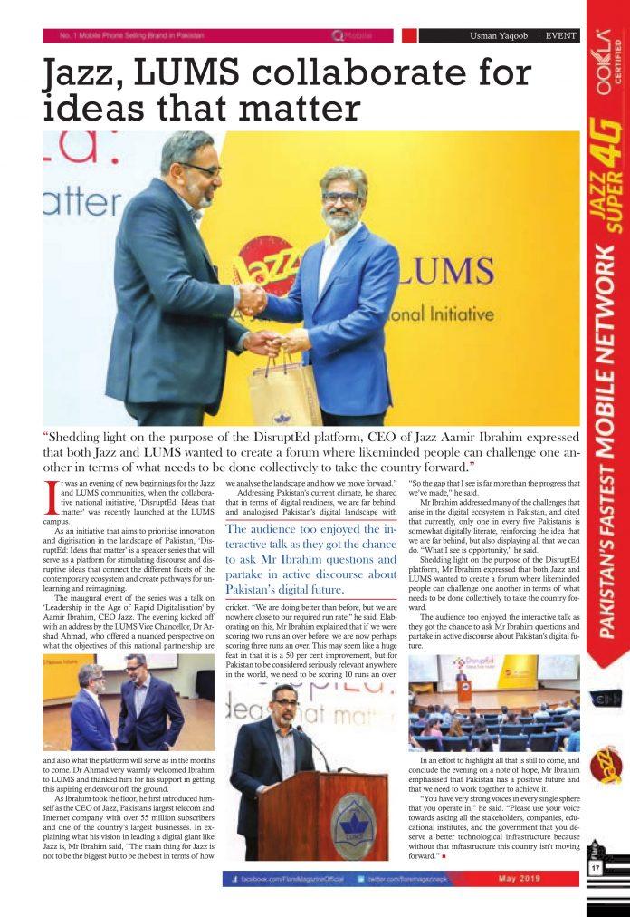 “Shedding light on the purpose of the DisruptEd platform, CEO of Jazz Aamir Ibrahim expressed that both Jazz and LUMS wanted to create a forum where likeminded people can challenge one another in terms of what needs to be done collectively to take the country forward.”
