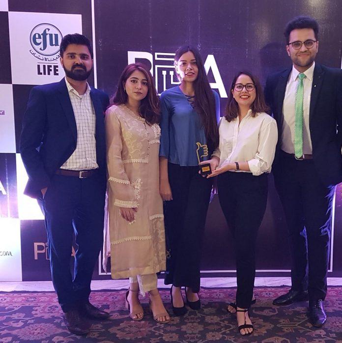 Pakistan” at the Pakistan Digi Awards 2019. The ceremony was held on the 28th of June, 2019 at Regent Plaza.