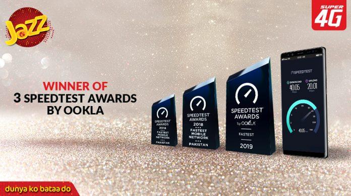 Jazz, Pakistan’s leading digital communications company, has been conferred the Speedtest Awards™ by Ookla®, for the third consecutive time. The results were announced after Ookla compared user-initiated tests taken on the Speedtest iOS and Android mobile apps from all major mobile operators in Pakistan during Q1-Q2 2019. The award marks a major achievement for Jazz for staying significantly ahead of its competitor telecom networks.