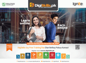 Digiskills.pk is Pakistan’s largest online training program, developed and run through Ignite, under the ambit of Ministry of Information Technology & Telecom. Within a year more than 500,000 free trainings have been given across Pakistan. And the program aims to provide another 500,000 trainings over the course of 1 year.