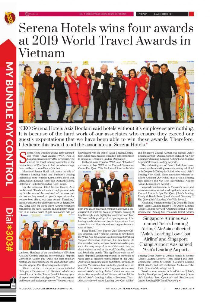 Serena Hotels wins four awards at the star-studded World Travel Awards (WTA) Asia & Oceania gala ceremony 2019 in Vietnam. The elite of the travel industry assembled at the pristine island of PhuQuoc to find out who amongst them had been crowned best of the best.