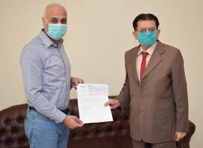 In line with its CSR vision, PTCL has sponsored Pakistan Red Crescent Society (PRCS) 120-beds Corona Care Hospital on 6th Road, Satellite Town, Rawalpindi for procurement of medicines, as part of PTCL Coronavirus support and relief package. Ahmed Jalal, EVP, HR Operations, PTCL, is presenting cheque to Brigadier Abdul Hadi (R), Member Managing Body PRCS, at PTCL HQ, Islamabad.