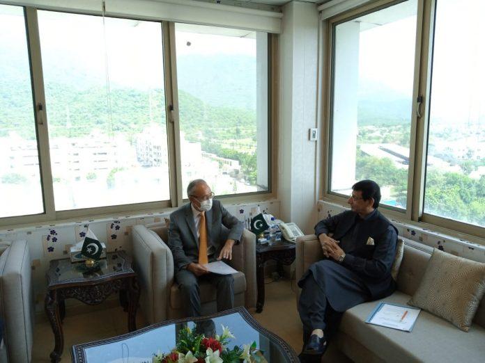 ISLAMABAD (10-9-2020): Japan Ambassador to Pakistan Kuninori Matsuda called on Federal Minister for IT and Telecommunication Syed Amin Ul Haque in his office on Thursday.