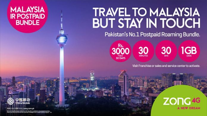 Pakistan’s top cellular and digital services provider, Zong 4G, has introduced another unmatched international roaming offer for its postpaid customers traveling to Malaysia. Zong 4G’s postpaid customers will now be able to stay connected to their loves ones back at home at incredibly affordable rates as they travel to Malaysia.