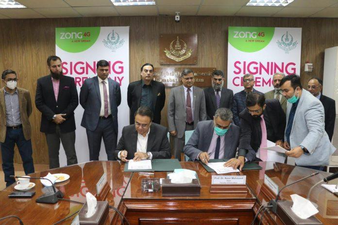 The signing ceremony took place at AIOU and was signed by Zong 4G’s Director Govt. and Corporate Sales & Services Mr. Farhan Zakir, and AIOU Chairman & Dean Prof. Dr Nasir Mahmood signed the agreement in presence of Moied Javeed, Acting Chief Commercial Officer, Zong 4G and other key representatives from both the organizations.