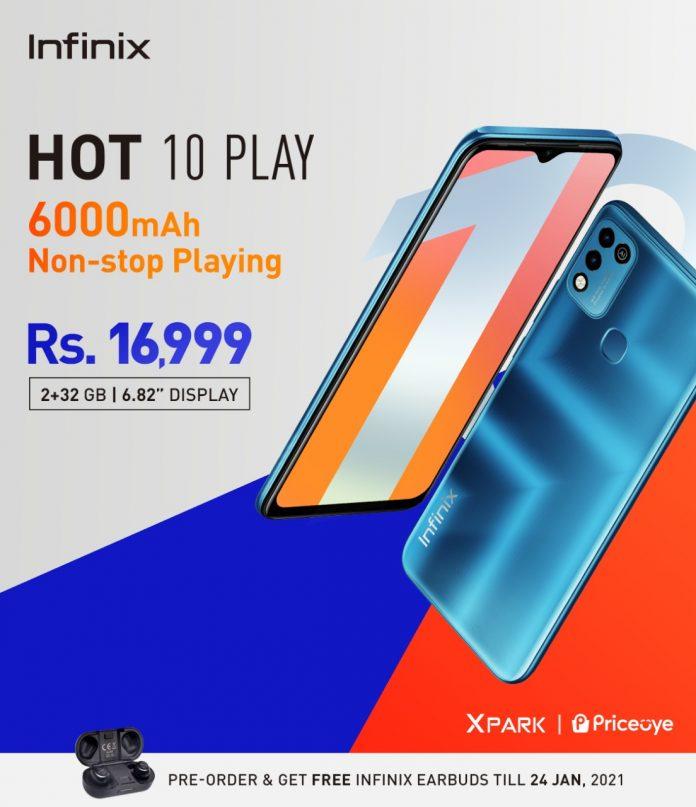 Infinix, the number 1 selling smartphone brand of Pakistan has announced the latest additionto its celebrated Hot Series, the Hot10 Play. Infinix has started the pre-orders from 18th January on Xpark and PriceOye that will last till 24th January 2021. During pre-orders customers will be able to get a free Wireless Bluetooth Headset XE08on buying the Infinix Hot 10 Play at Rs.16,999.