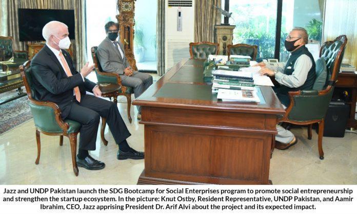 Aimed at promoting social entrepreneurship and strengthening the startup ecosystem in the country, UNDP Pakistan and Jazz have launched SDG Bootcamp for Social Enterprises. Under the project, 20 bootcamps will be conducted across the county to train 800 young social entrepreneurs, including 50 percent women, over the course of two years. In this regard, a meeting was also held with Dr. Arif Alvi, President of Pakistan recently where Knut Ostby, Resident Representative, UNDP Pakistan and Aamir Ibrahim, CEO, Jazz apprised the President about the project and its expected impact.