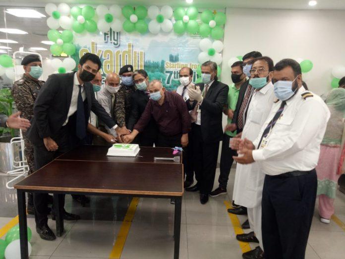Karachi, 7 July 2021: PIA has started flights from Faisalabad to Skardu. The first flight took off from Faisalabad today. A simple cake cutting ceremony was held at Faisalabad Airport. The passengers were seen off by PIA officials.
