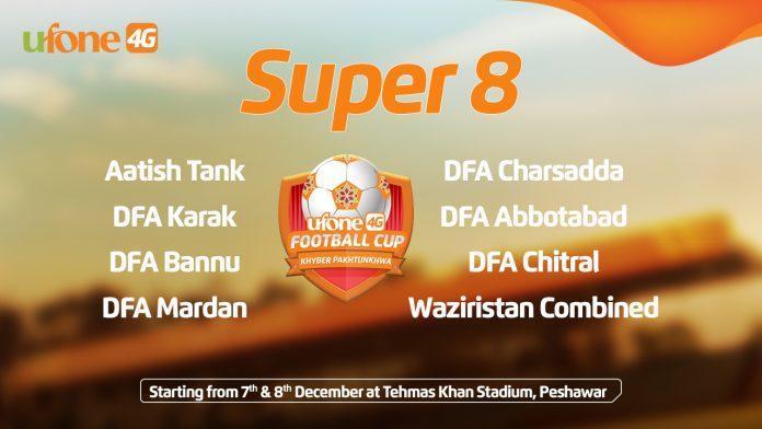 After the completion of the Eliminator round, DFA Charsadda, DFA Abbottabad, Aatish Tank, DFA Chitral, DFA Karak, DFA Mardan, DFA Bannu and Waziristan Combined have qualified for the Super 8 level, which will be played on 7th and 8th December, two matches a day. All the Super 8 and Semi Final matches will be played at the iconic Tehmas Khan Stadium in Peshawar. On 7th December, DFA Charsadda will face DFA Abbottabad while DFA Tank will play DFA Chitral. The next day, DFA Karak will fight it out against DFA Mardan while DFA Bannu will be pitted against Waziristan Combined.