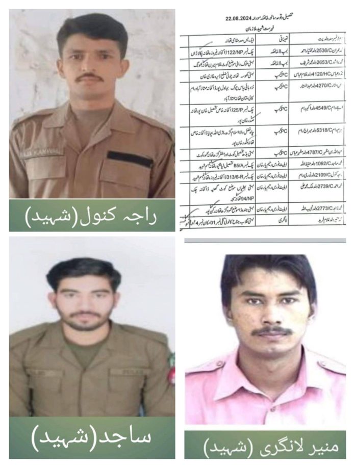 A devastating attack by dacoits in the Liaquatpur Kacha area, within the limits of Machchka police station, has resulted in the martyrdom of three brave police officers. The victims, identified as Sajid from Chak 85 Abbasia, Raja Kanwal from Chak 313, and Munir Langri from Basti Gulab, were stationed in different areas of Liaquatpur tehsil.