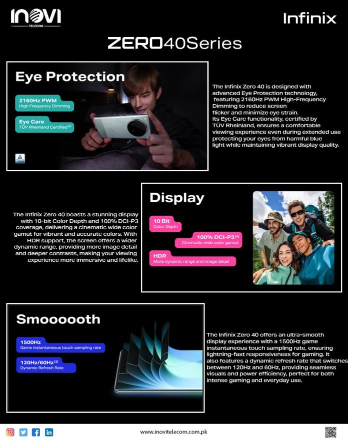 The Infinix Zero 40 is available in a range of stylish colors, including Rock Black, Misty Aqua, and Blossom Glow. With its compelling combination of features, performance, and design, the Zero 40 is set to make a splash in the competitive mid-range smartphone market.