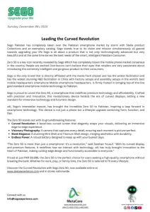 [Islamabad, Pakistan] – December 8, 2024 – Sego Pakistan has announced the launch of its highly anticipated Zero 50 smartphone, marking a significant milestone in the country’s mobile phone market. The Zero 50 boasts cutting-edge technology and a sleek design, setting a new standard for premium yet affordable smartphones in Pakistan.