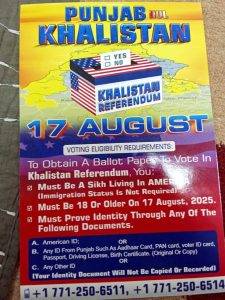 Web desk 08/08/2025: WASHINGTON, D.C. – A global Sikh referendum for an independent state of Khalistan is set to take place in Washington, D.C. on August 17. The event, organized by the Sikh community, aims to bring international attention to the long-standing demand for an independent homeland in Punjab.