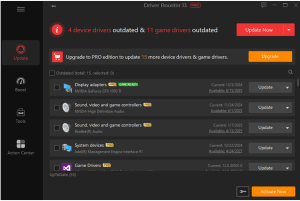 At the heart of the program is the Scan button. With one click, Driver Booster checks every driver on your system. Within moments, it presents a detailed report of outdated, missing, or faulty drivers.