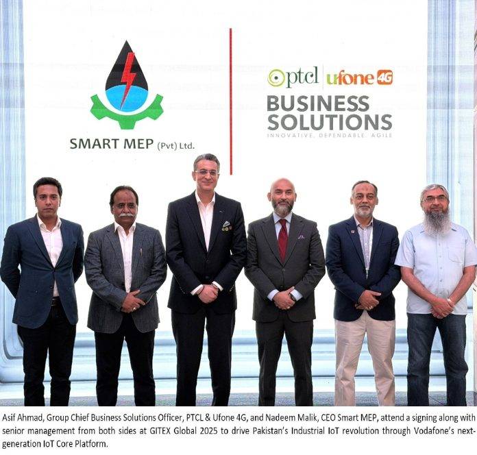 Dubai/ Islamabad, October 23, 2025: PTCL Group (PTCL & Ufone 4G), Pakistan’s premier telecommunication and ICT powerhouse, has forged a game-changing alliance with Smart MEP, the nation’s top engineering and system integration firm. Showcasing its commitment to driving digital transformation, PTCL Group announced at GITEX Global 2025 Dubai its strategic move to harness Vodafone’s IoT Core Platform — a bold step set to revolutionize Pakistan’s Industrial IoT landscape and propel the nation into a new era of smart industry innovation.