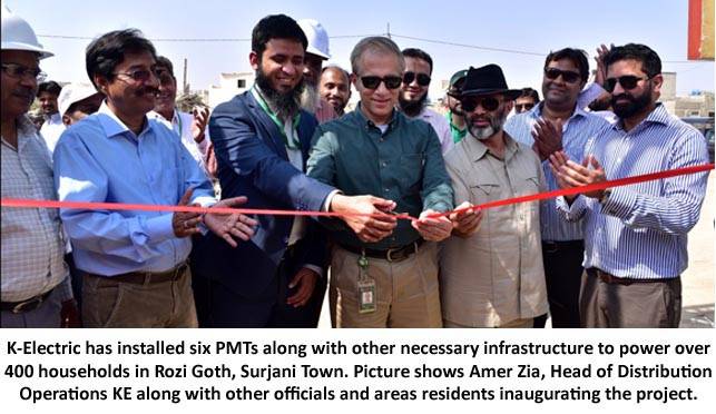 Karachi, 6th November 2017: K-Electric has installed six PMTs along with other necessary infrastructure to power over 400 households in Rozi Goth, Surjani Town. The area was energized recently in a ceremony attended by KE management representatives and the area residents.Rozi Goth was previously infested with illegal wiring and theft, also causing faults and tripping in adjoining areas. Besides providing the consumers with reliable power supply through low cost connections, load management in surrounding areas has also been enhanced through the project. It is pertinent to note that kunda-resistant Aerial Bundled Cables are installed throughout Rozi Goth and the project has been completed with a cost of over Rs 66 million in partnership with the residents.