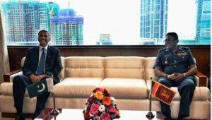 Defence Secretary of Pakistan, Lt. Gen. (R) Ikram-ul-Haq, during his 4-day visit to Sri Lanka, met with the Chief of Defence Staff of Sri Lanka, Admiral R.C. Wijeygunaratne, Commander of Sri Lanka Air Force, Air Marshal Kapila Jayampathy, Commander of Sri Lanka Army, Lt. Gen. Mahesh Senanayake, Commander of Sri Lanka Navy, Vice Admiral Sirimevan Ranasinghe.